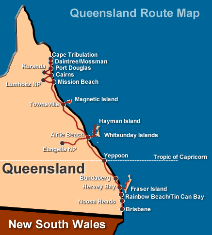 This map shows the route we took. We did the Airlie Beach > Mission Beach 4 times as we hooked up with family before returning to Airlie Beach to get married.